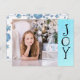 Add your family's names, holiday message and picture to this affordable postcard! Colours are blue black and white with pretty snowflakes throughout.