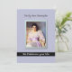 Customisable Invite with Photo Frame and Ribbon This customised invitation or remembrance keepsake has a place to add a photo (replacing the elegant lady portrait). In a soothing lilac blue it features a silver look photo frame, beneath which runs a black velvet ribbon with the words 'We celebrate your life'. Above the frame is a place to enter the person's name. This is an elegant and respectful way to mark a passing and to commemorate a life that gave so much to those left behind. The reverse of this flat invite is easy to personalise with the relevant details or the memorial or get-together to honour your friend or relative.