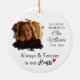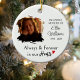 This simple memorial christmas ornament festures a custom photo and name.