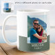 Create your own photo coffee mug! This stylish template is personalised with two favourite photographs, and your name. A perfect keepsake gift for family and friends — ideal for birthdays, anniversaries, or any special occasion. Printed colours: grey green and white.