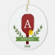 Personalised Photo Pickleball Christmas Ornament. Commemorate your year of pickleball playing with a cute festive ornament. Personalise with an initial inside of the paddle, as well as add your name and year. Shown in a classic red and green palette with a standard yellow pickleball, but ALL COLORS ARE EDITABLE BY YOU! You can choose new colours for the paddle, holly + berries, banner, and text. Add your photo to the back of the ornament. © Kimbellished, LLC