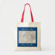 Personalised photo tote bag with your picture image. Make your own tote with custom photograph and text. Rectangular navy blue border template design with elegant font. Cute gift idea for wedding party.