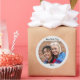 Your unique photo and two lines of personalised text highlight these custom round stickers.