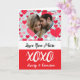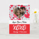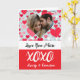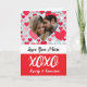 Personalised Valentine's Day card. Add your favourite couple's photo to this sweet custom Valentine's Day card. Blue and red hearts background. You can also customise all the text on the card.