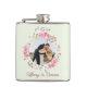 Your favourite couples photo and two lines of personalised text highlight this floral frame custom wedding flask.