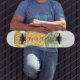 This girly Skateboard is decorated with a hand drawn pineapple in shades of yellow and green with pink typography.