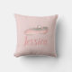 Pillow features an original marker illustration of a pink leather ballet slipper, printed on a pink background. Simply personalise with the name of your favourite dancer for a unique piece of dance-themed decor!