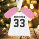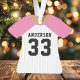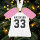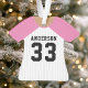 Celebrate your baseball star with this personalised pink and white pinstripe jersey ornament. Perfect for commemorating a special season, player, or team. Customise it with a name and number to create a unique keepsake.