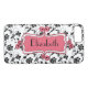 You can personalise the name on this chic and trendy black and white damask floral, pink tag iPhone case.