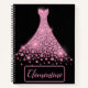 Personalised Pink Black Glitter Gown Sketchbook Notebook