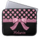 Personalised Pink Black Polka Dot Ribbon Bow Laptop Sleeve