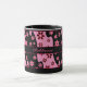 Personalised pink black and red floral pattern with flowers of alternate pink and red petals on a black and pink background. Fully customisable by adding the name or words of your choice in the easy to use template to create a unique personalised gift. sgb01