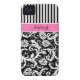 Personalised Pink, Black, White Striped Damask Case-Mate iPhone Case