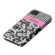 Personalised modern pink, black, and white stripes with damask Case-Mate Barely There™ iPhone 4 Case.