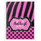 This monogrammed pink, black, and white zebra stripes and polka dots notebook has template boxes for you to add your name, monogram, or other text. If you need help customising this item, please email niteowlstudio@gmail.com for assistance.