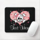 A goth yet girly heart and personalised pink bow skull mousepad with a grunge grey and pink splatter background. Personalise these cute skull and crossbones mouse pad with your own name or whatever you want to say on it. Artwork © Chrissy H. Studios, LLC. All Rights Reserved.