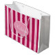 Pink and raspberry candy coloured stripes decorate this gift bag. Personalise this cute gift bag by changing the name. This bag is great for a birthday, holidays, Christmas, etc...The design is from original art.