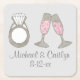 Personalised Pink Champagne Diamond Wedding Ring Square Paper Coaster