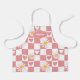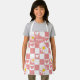 A cute apron that features a pink chequered design with hearts and daisies that is perfect for arts, crafts and cooking adventures.