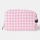 Personalised Pink Chequered Plaid Dopp Kit for toiletries and cosmetics.