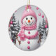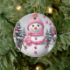Personalised Pink Christmas Snowman Ceramic Tree Decoration