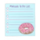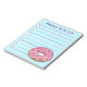List-style note pad design features an original marker illustration of a pink frosted doughnut with sprinkles, on a blue background with multicolored text. Great for any junk food junkie! Just personalise with your information.