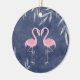 Personalised Pretty Pink Flamingo Couple on a Grungy Dark Blue Tropical Beach Background Christmas Ornament. ~