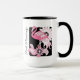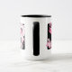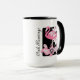 The product design features a flamingo with kaleidoscopic paisley patterns in shades of pink. This tropical bird original whimsical illustration makes a girly cute and unique coffee mug with personalised text.