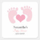 Personalised Pink Footprints Hearts Baby Shower Square Sticker