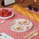 fried eggs pattern, bacon and eggs design, pink background food pattern, breakfast seamless pattern, retro food design, quirky kitchen decor, food lover gifts, bacon and eggs art, pink food wallpaper, cheerful breakfast design, whimsical food art, breakfast lover gifts, sunny-side-up eggs print, retro pink background, pastel food pattern, kitchen textiles design, cafe menu decor, diner-themed pattern, brunch-inspired design, fried eggs wallpaper, bacon lover gifts, food-themed stationery, vintage breakfast print, colourful food design, unique kitchen gifts, breakfast art print