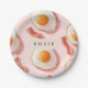 Personalised Pink Fried Eggs and Bacon Pattern Paper Plate