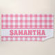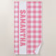 Personalised Pink Gingham Plaid Kids Name beach towel.