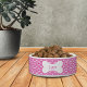 Pamper your precious pet with this personalised timeless pink gingham with paws patterned pet bowl! Personalise it with your dog's name in the bone.