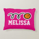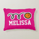 Personalised girls pillow with cute basketball ball design. Sports theme home decor with name or monogram of child. Cute print with girly colours for baby nursery, childrens bedroom or play room with sofa / couch. Suitable for boys and girls. Customisable background colour ie blue or neon pink. Sporty 1st Birthday gift idea for son, grandson, grandchild, granddaughter, daughter, nephew, etc. Also cool for coach, player and fan. Create your own for team mates or club house decorations. Whymisical illustration.