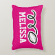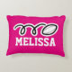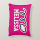 Personalised girls pillow with cute rugby ball design. Sports theme home decor with name or monogram of child. Cute print with girly colours for baby nursery, teen childrens bedroom or play room with sofa / couch. Suitable for boys and girls. Customisable background colour ie blue or neon pink. Sporty 1st Birthday gift idea for son, grandson, grandchild, granddaughter, daughter, nephew, etc. Also cool for coach, player and fan. Create your own for team mates or club house decorations. Whymisical toy illustration for rugby chick. Also available for other sports.