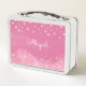 Personalised Pink Glitter Girly Metal Lunch Box with sparkle pink faux diamonds and rhinestones.