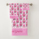 Cute adorable pink gnomes on a bath towel set. Contains bath towel, hand towel, and wash cloth.  Personalise each of the towels with your name or text. Can be bought individually or by the set.