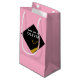 Graduation gift bag featuring black and gold grad cap on pink background. Edit text to add name of graduate.