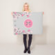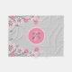 Monogrammed girl blanket in pink and grey- Pink and grey daisies and tulip flowers decorate the side bottom edges. Add personalised baby girl's name and monogram initial in centre of matching pink circle. Cute baby girl shower present or gift for newborn girl born in the springtime. Older girls or any female would love this, too. Edit monogram font style, size and/or colour by using the customise button. Even change the grey background if you like.