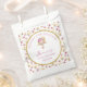 Personalised Pink Gold Hot Air Balloon Baby Shower Favour Bag. Elegant watercolor floral designs, faux glitter border, and hot air balloon. Personalise all text details. © Kimbellished, LLC