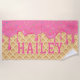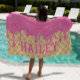 Get that drip this summer with this awesome personalised beach towel with a pink melting ice cream design on a waffle cone background. Personalise with her name in sporty pink lettering.