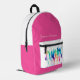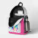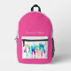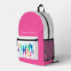 add your childs name to this stylish pink backpack featuring colourful dancers on a white background on the pocket, fun design ideal for school day trips or dance class. never lose your childs bag again.