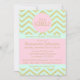 Send these cute and modern girl baby shower invitation cards for your next baby shower/sprinkle party! Lovely chevron pattern in pink and mint green with gold foil accent. Custom templates so you can edit all the text. Back has BABY's NAME.