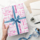 This customisable gift wrap showcases a personalised name in pink hues presented in an elegant pattern. Perfect for birthdays or special occasions, it’s a one-of-a-kind wrapping paper for both kids and adults.