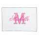 Personalised elegant neon pink name monogram decor pillowcases. Cute pillow case sleeve for bedroom with vintage typography initial letter and stylish script text. Classy home decor for newly weds couple, husband and wife, newlyweds, honeymooners, bride and groom, childrens room. Trendy design in customisable colours. Luxury style wedding favour gift idea. Chic monogrammed bed decoration for him and her. Add custom his and hers surname, family name, last name etc. Cute wedding, bridal shower, engagement, anniversary gift idea for men and women living together.
