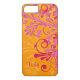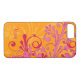 Bold and bright orange and hot pink abstract decorative scroll floral case. Personalise it with your first name.