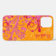 You can personalise the name on this orange and hot pink abstract floral iPhone case. To change the name, use the personalise it feature. For more extensive changes to the text, such as changes to the font, font size, font colour, or text placement, use the customise it option.