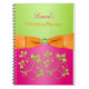 This customisable hot pink, orange, and lime green floral wedding planner notebook has a PRINTED ON orange ribbon with a PRINTED ON gemstone and diamonds jewel brooch on it that matches the wedding invitation shown below. It has template boxes to add your own text. If you need help customising this item, please email niteowlstudio@gmail.com for assistance.