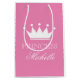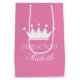 Personalised pink princess crown gift bag for girl. Girly design for baby shower, sweet 16 or Birthday party. Custom bag for childrens 1st 2nd 3rd 4th 5th Birthday party. Add your own name of child. Elegant script typography. Cute tiara design. Also nice for party favours.