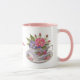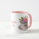 Pretty pink and purple flowers in a teacup on this tea mug. Personalised it with your saying. Available in many styles and colours. Makes a great gift for the tea lover in your life.